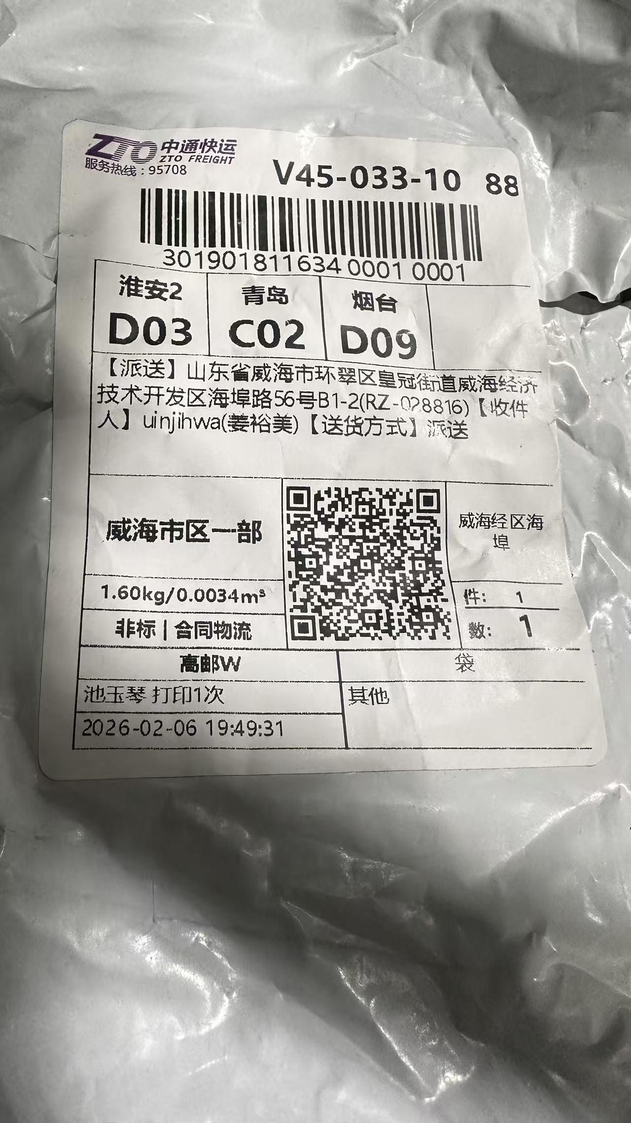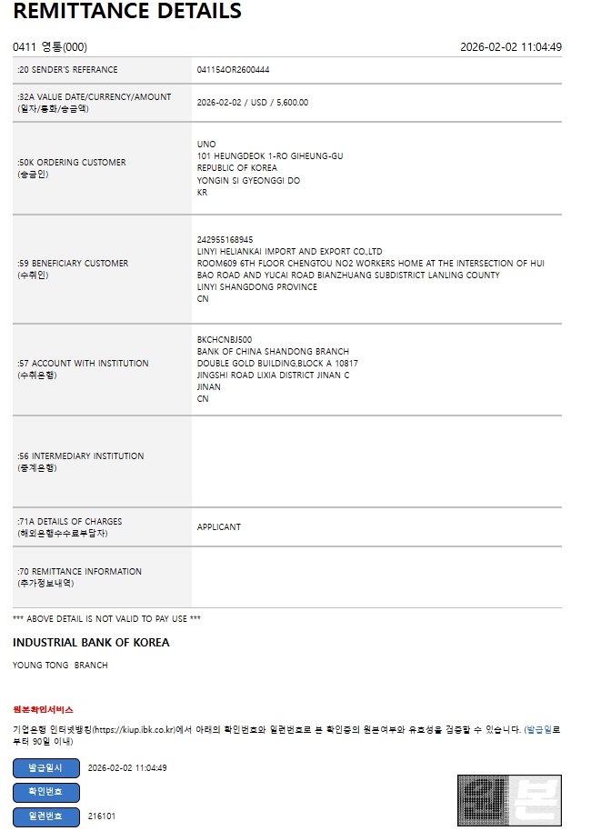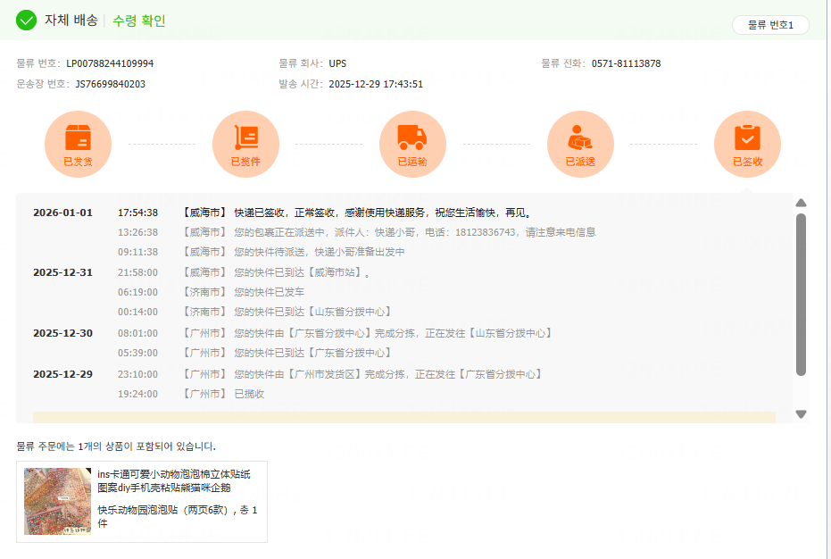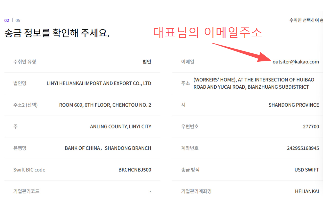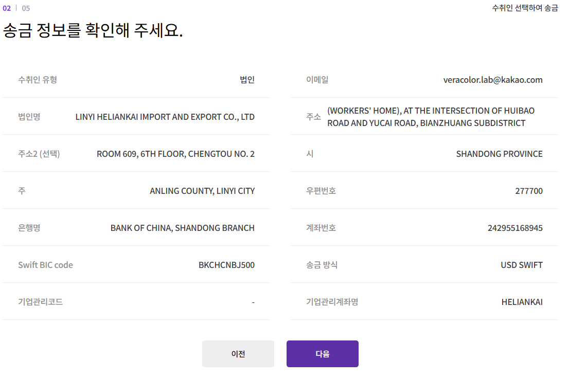 위해 영문주소 : Shandong Province / Weihai City / Huancui District / Crown Street, No. 56 Haibu Road, B2-7