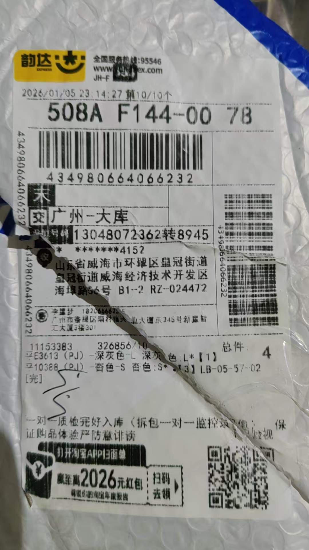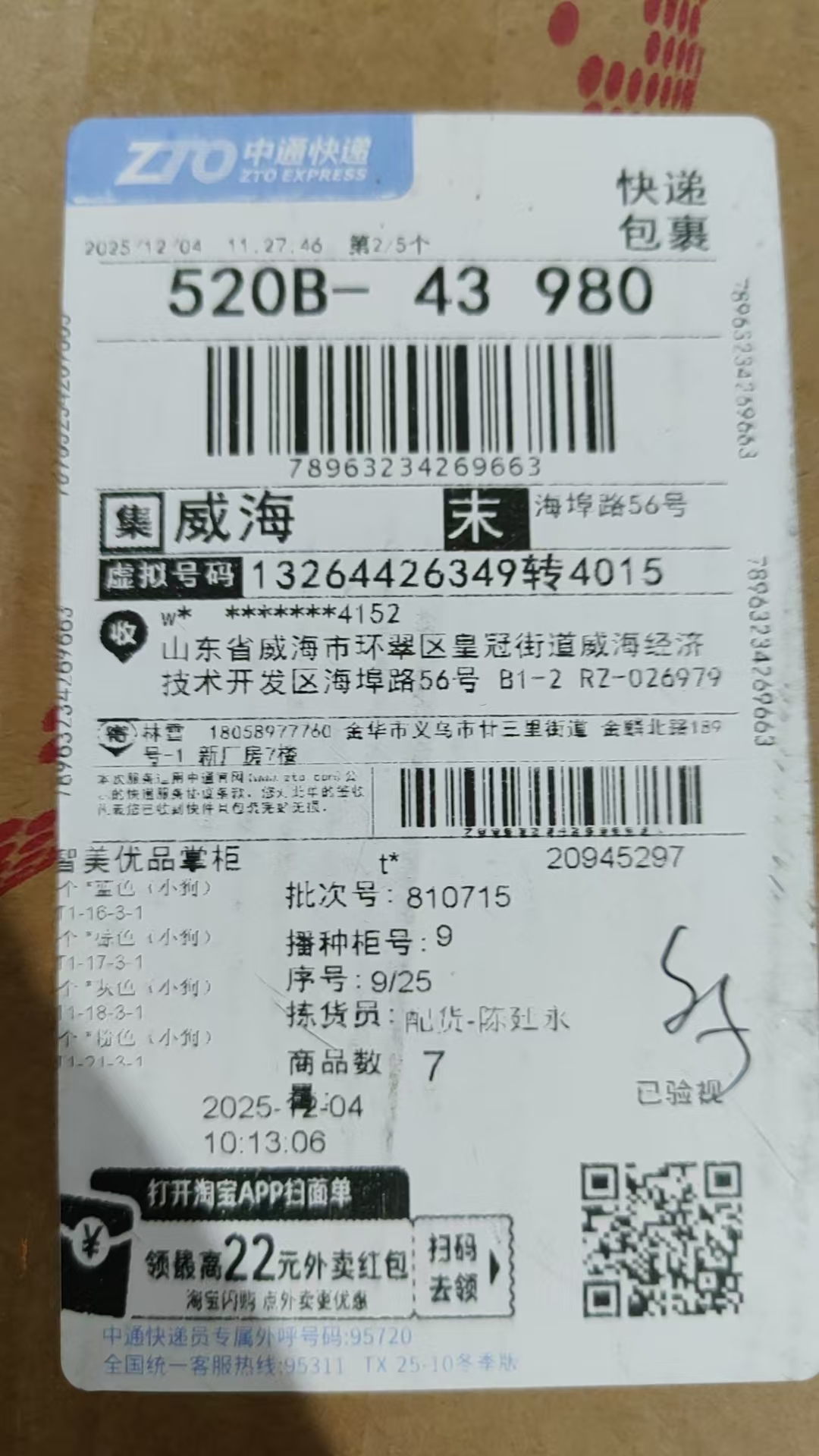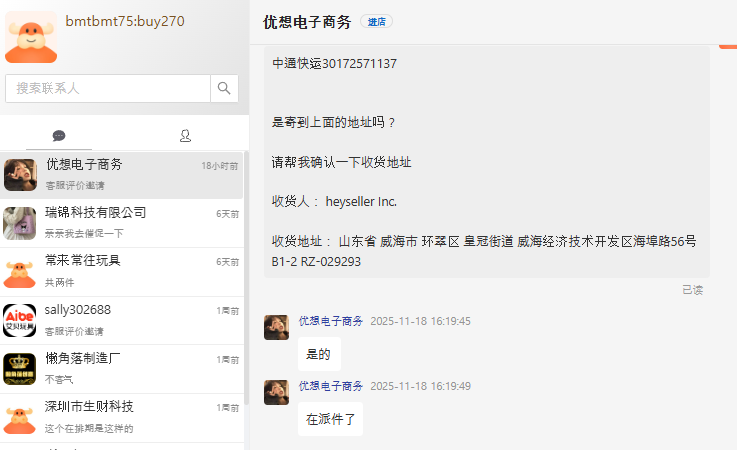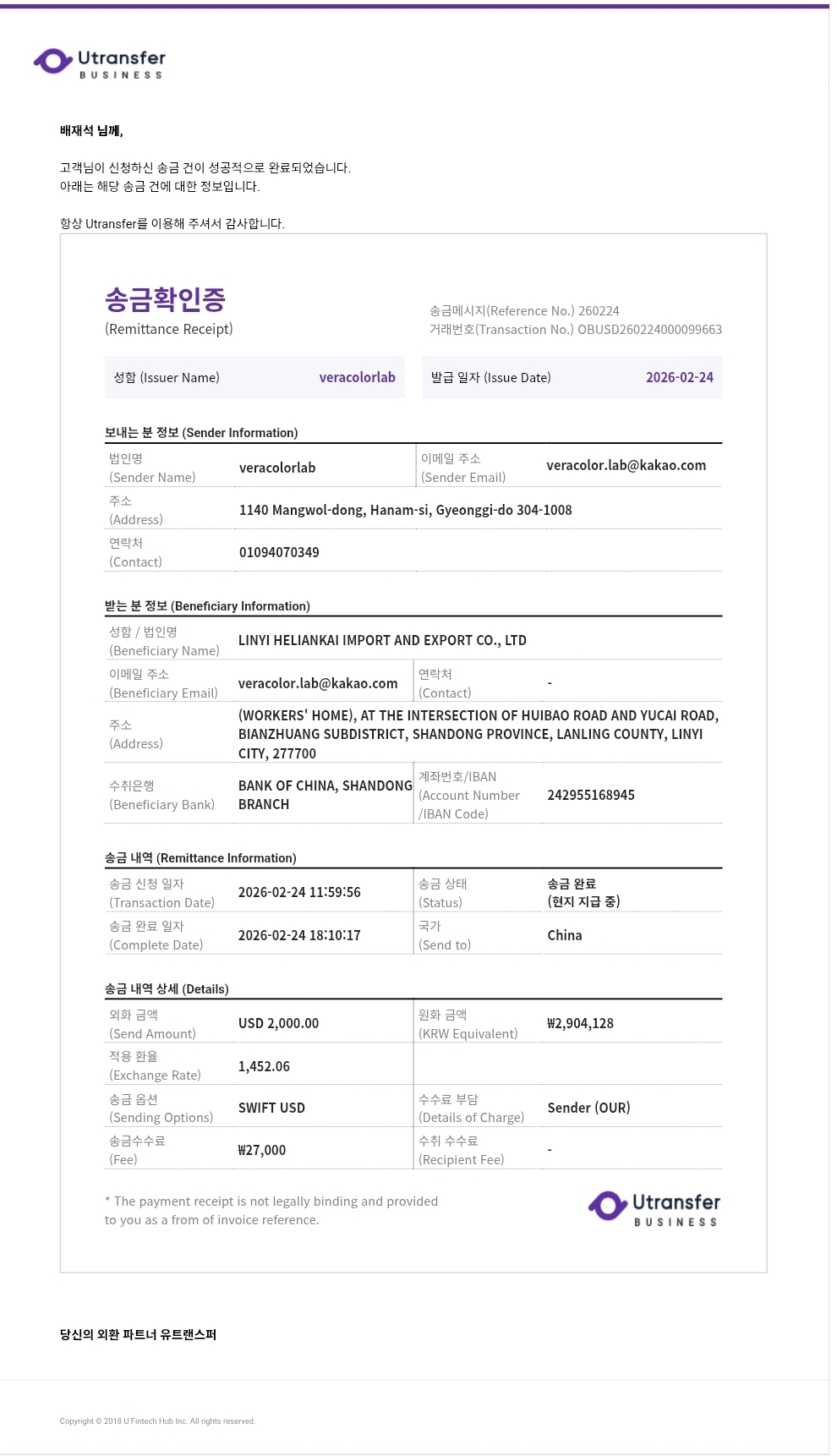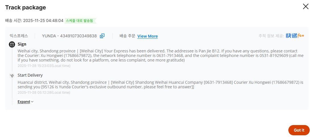 위해 영문주소 : Shandong Province / Weihai City / Huancui District / Crown Street, No. 56 Haibu Road, B2-7
