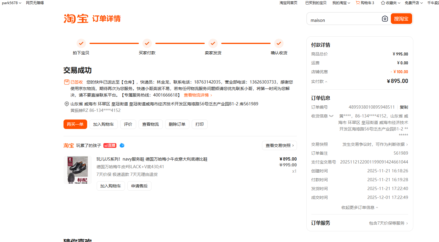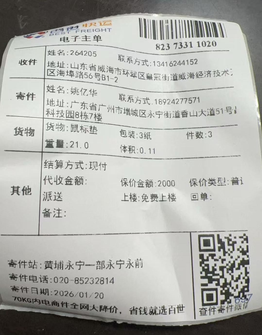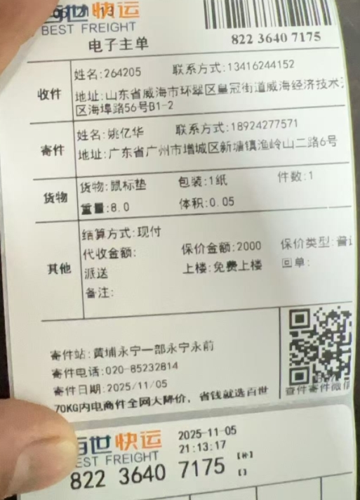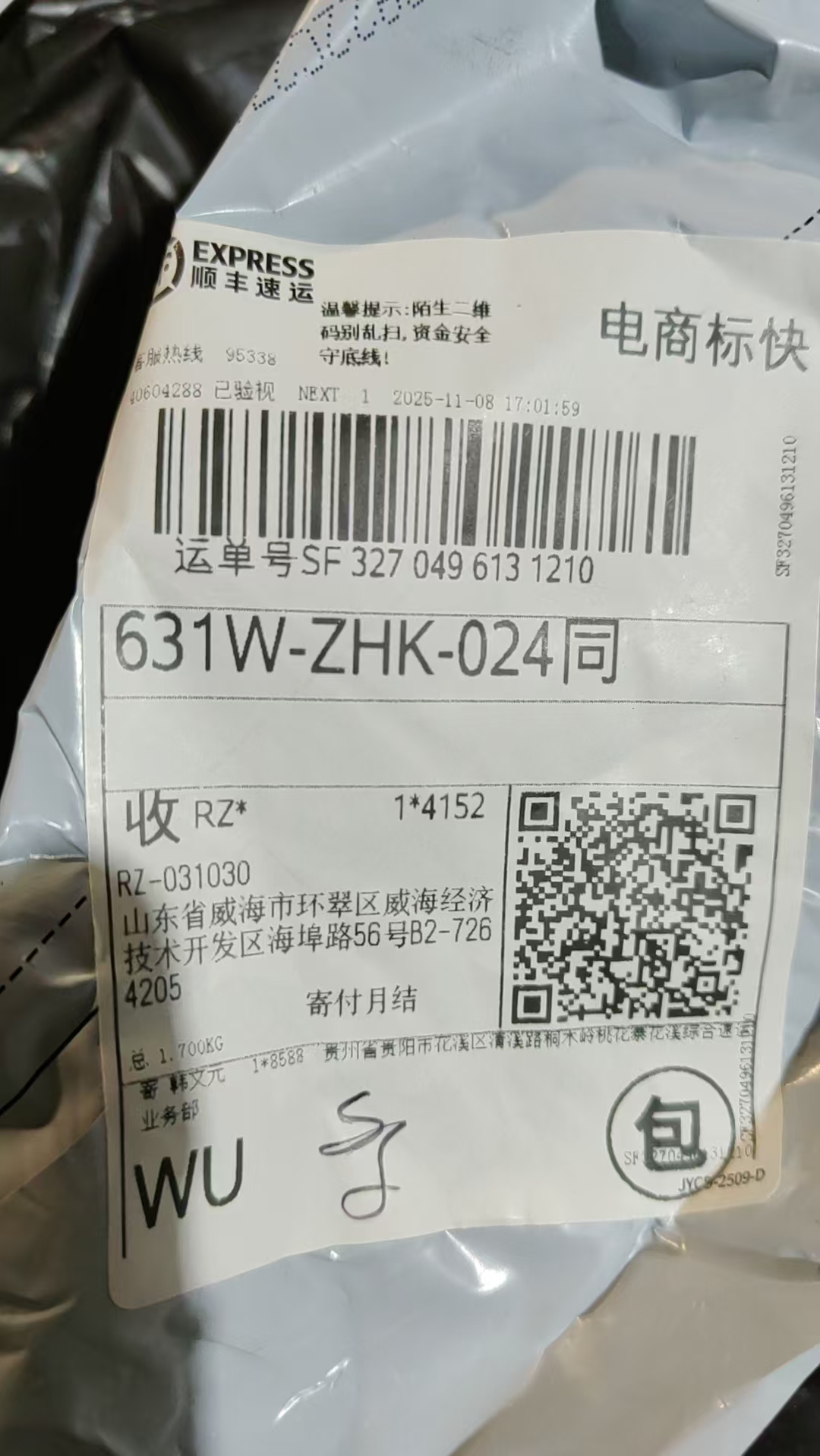 위해 영문주소 : Shandong Province / Weihai City / Huancui District / Crown Street, No. 56 Haibu Road, B2-7