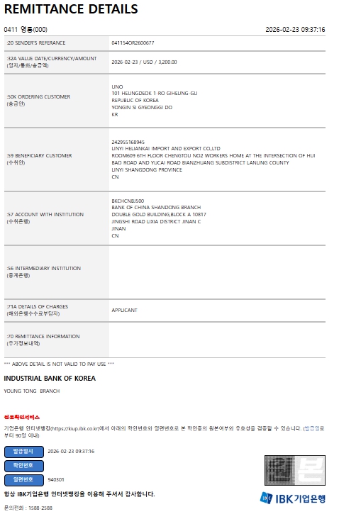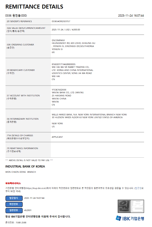 중국법인명 : 威海佰米兔贸易有限公司 중국사업자번호 : 91371000MA3Q1F600T