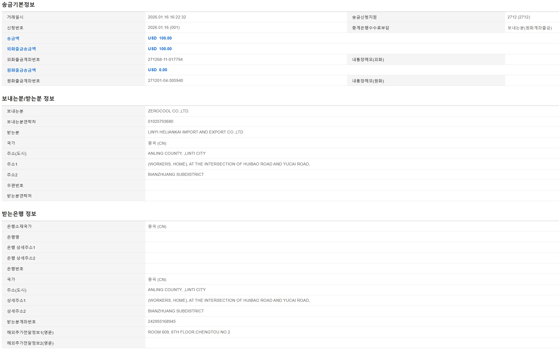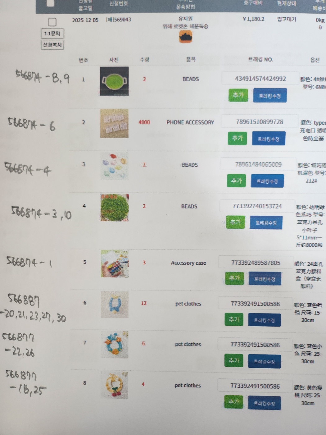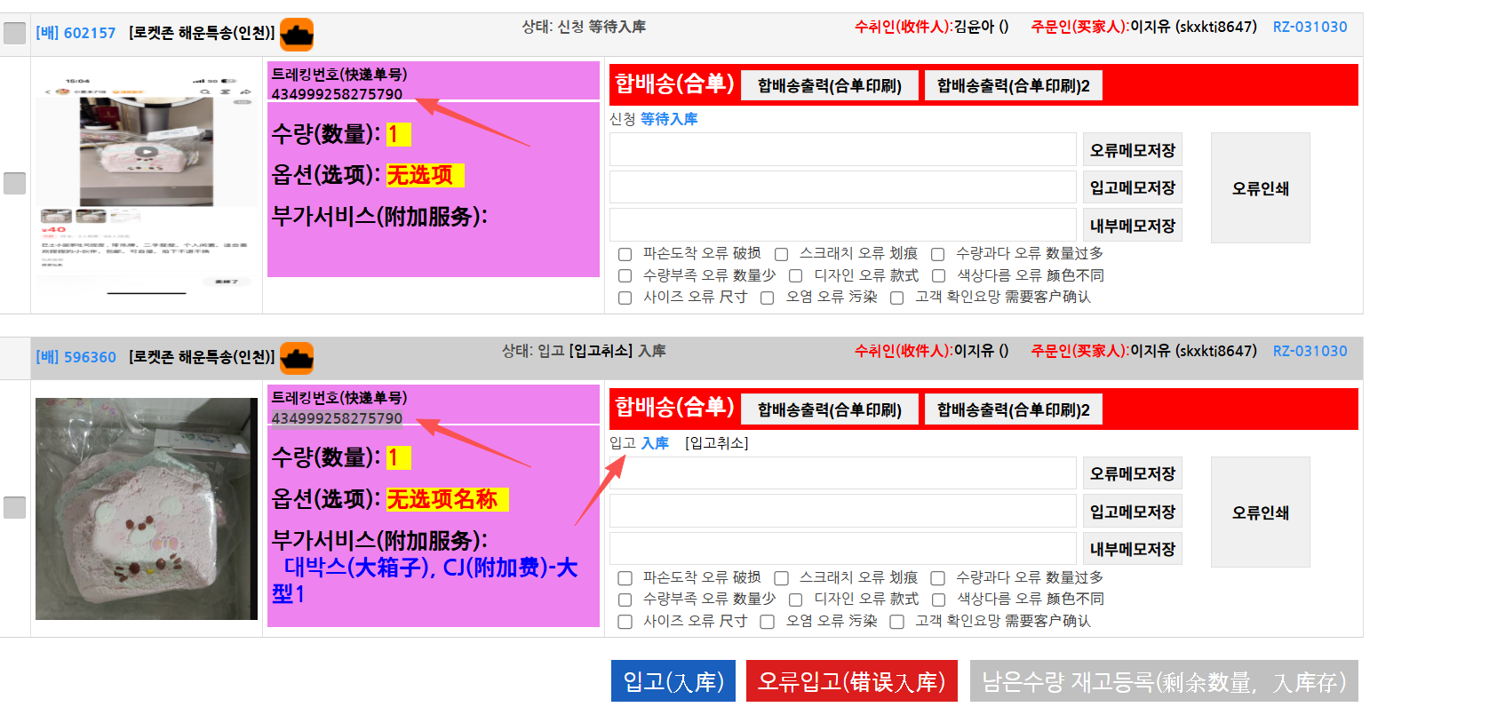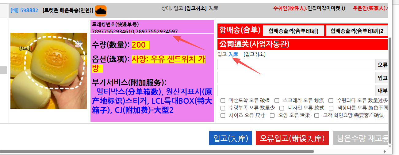 위해 주소 : (최상단 특송, LCL, 이우 주소 참고 바랍니다.)