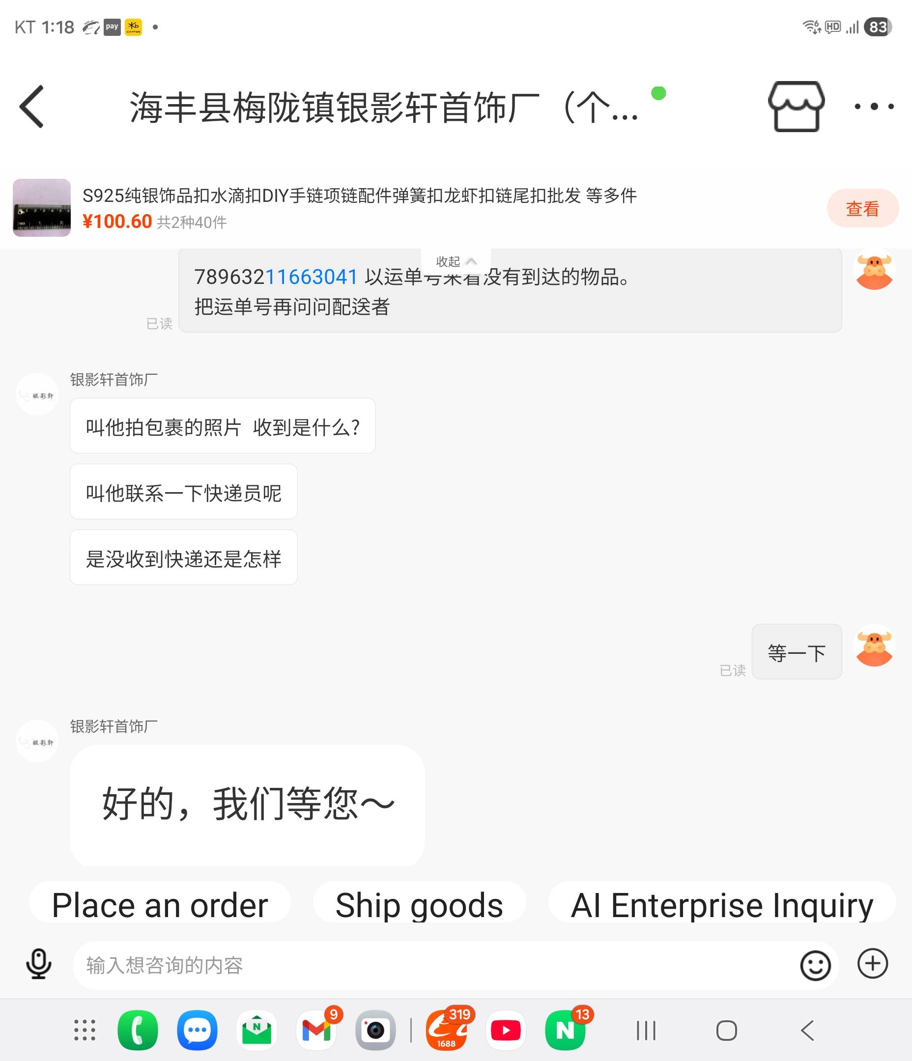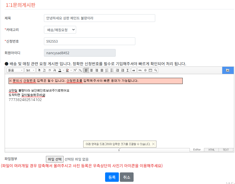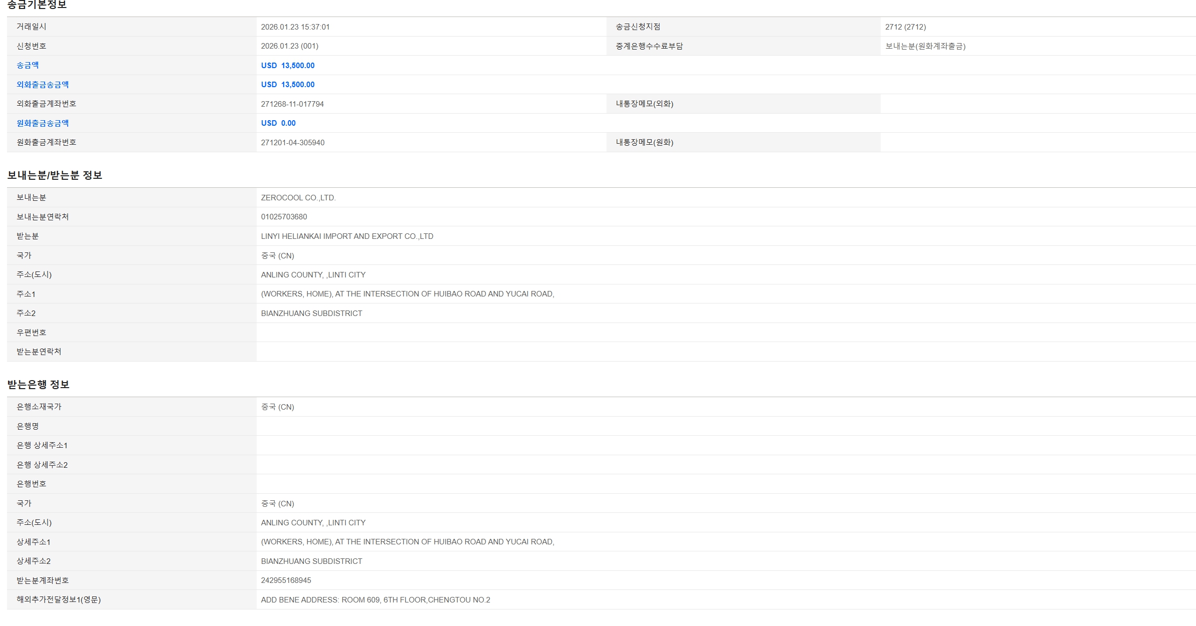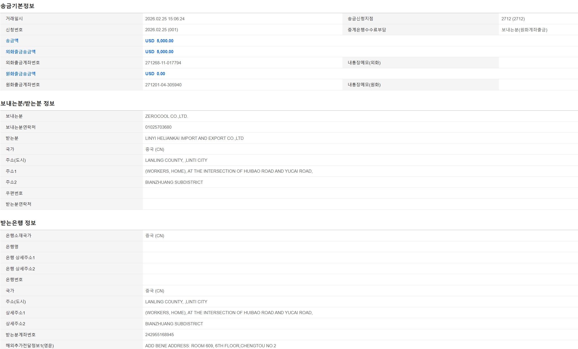위해 주소 : (최상단 특송, LCL, 이우 주소 참고 바랍니다.)