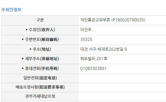 한국 배송지 주소를 잘 입력했나 햇갈려서요