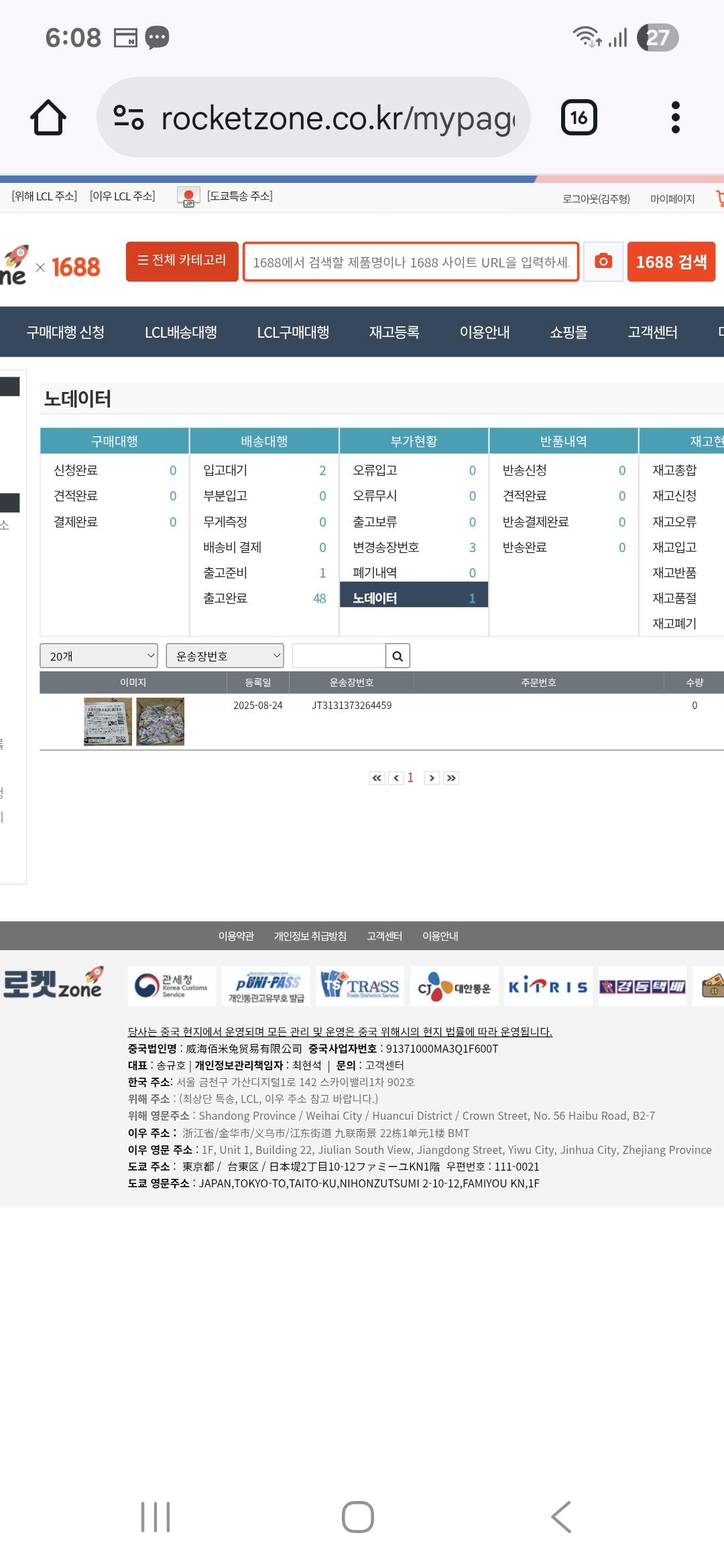 위해 주소 : (최상단 특송, LCL, 이우 주소 참고 바랍니다.)
